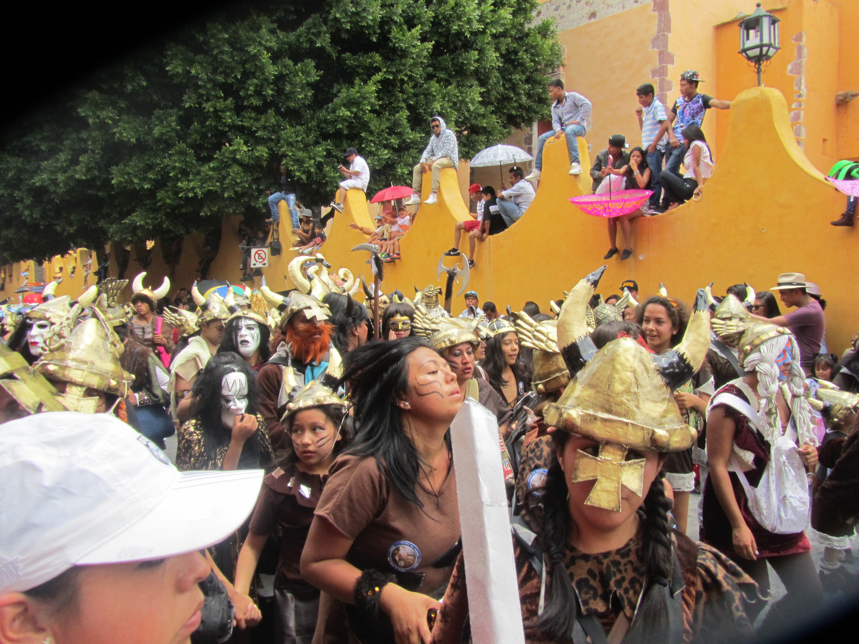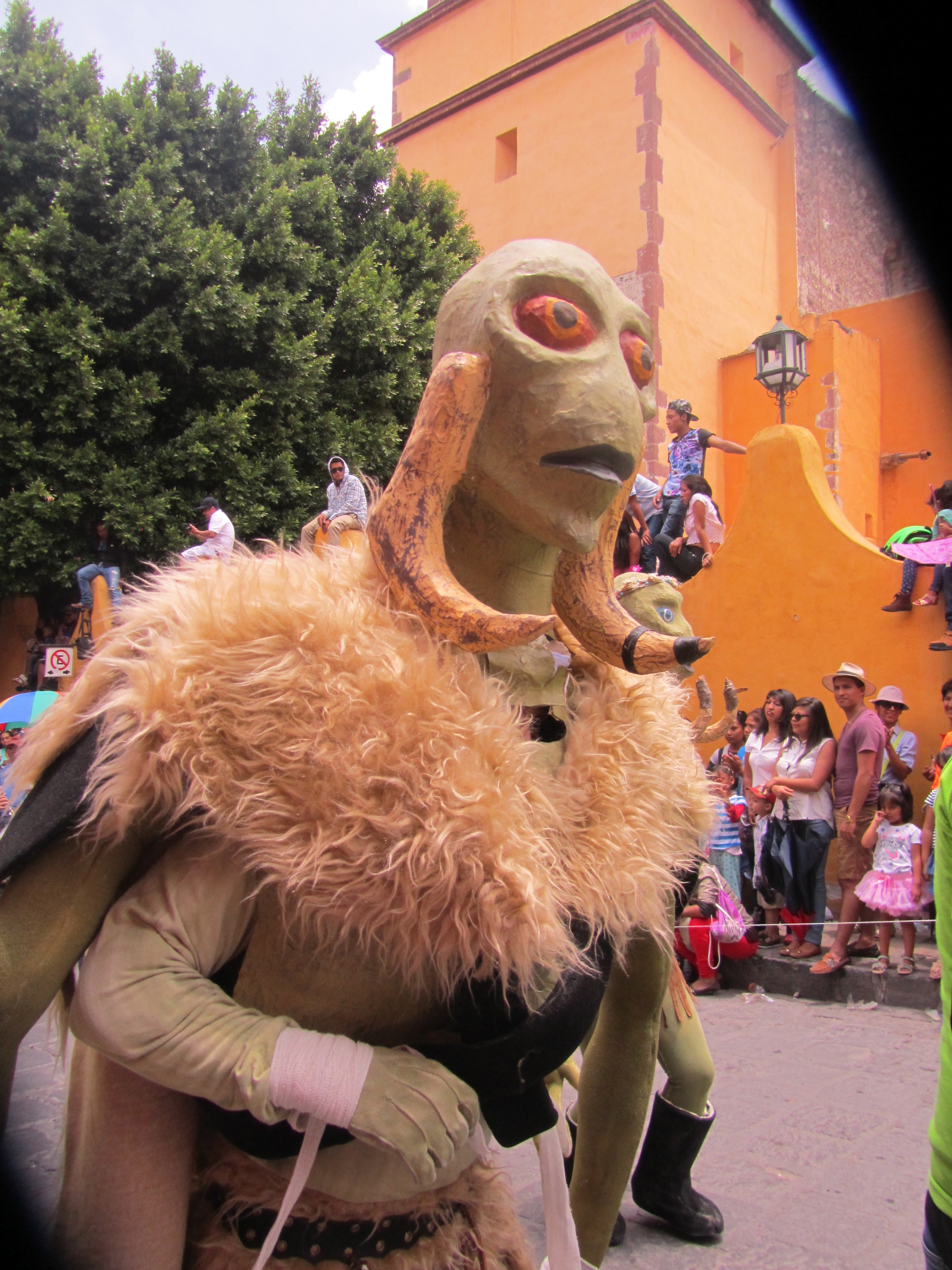 The other day on our way to La Gruta hot springs, our taxi driver asked us if we were going to go to El Festival de Los Locos. I asked him if he meant Locos as in ‘Borrachos’ or locos as in, well ‘Locos.’ He said it was a parade similar to Carnival in Brazil where people worked on their costumes all year in preparation. It is a parade to honor San Antonio de Pádua and is held every year on the Sunday closest to June 13th. It begins at La Iglesia San Antonio and snakes down six streets before ending at the Jardín Central in the Zócalo at the center San Miguel de Allende.