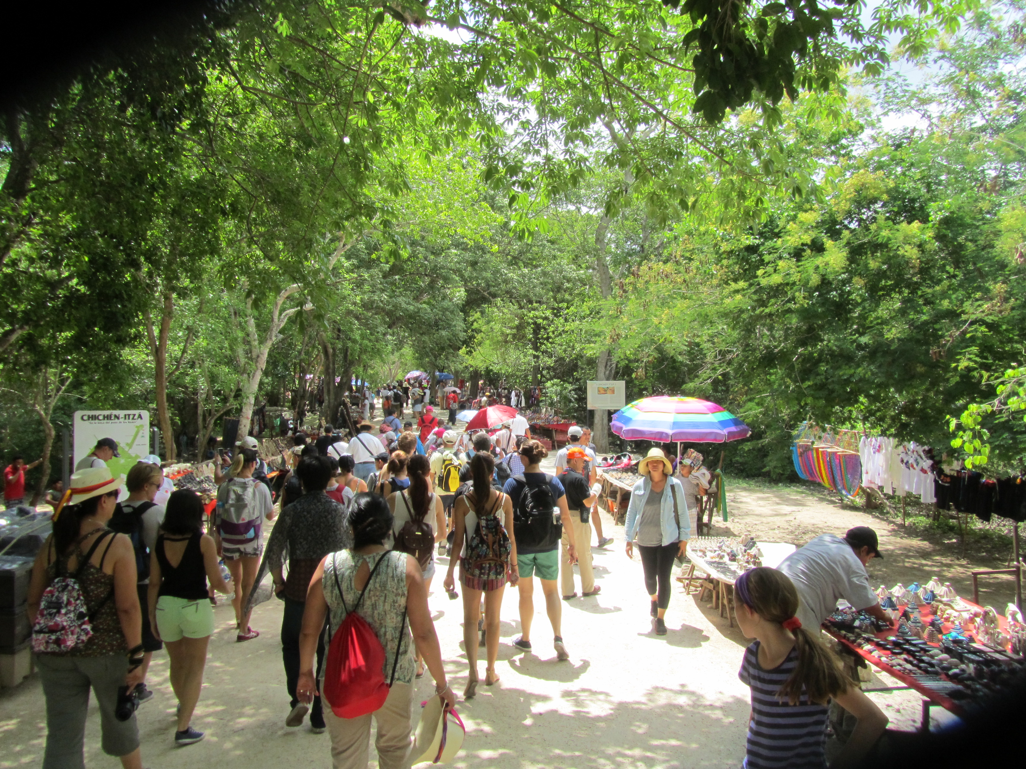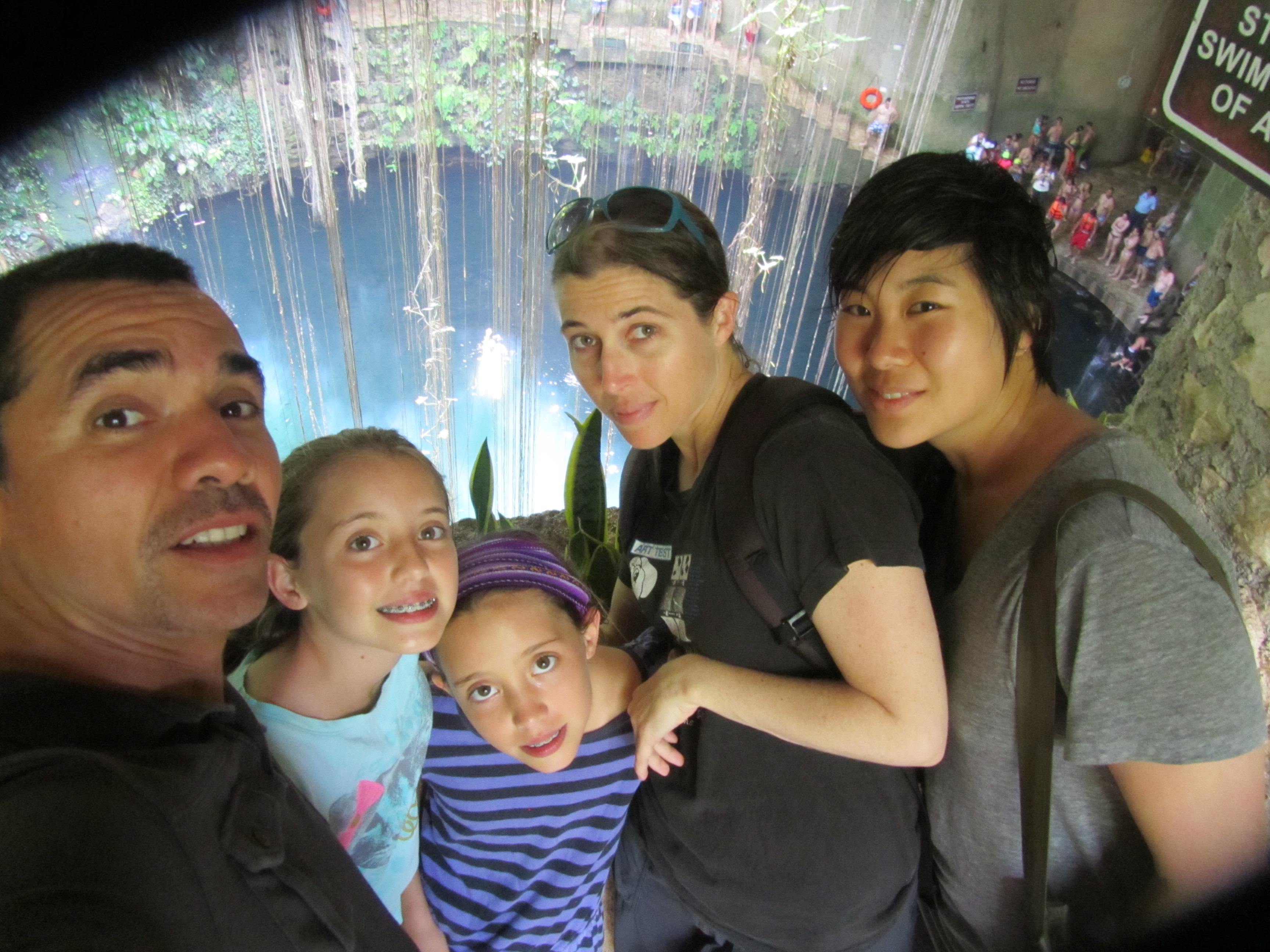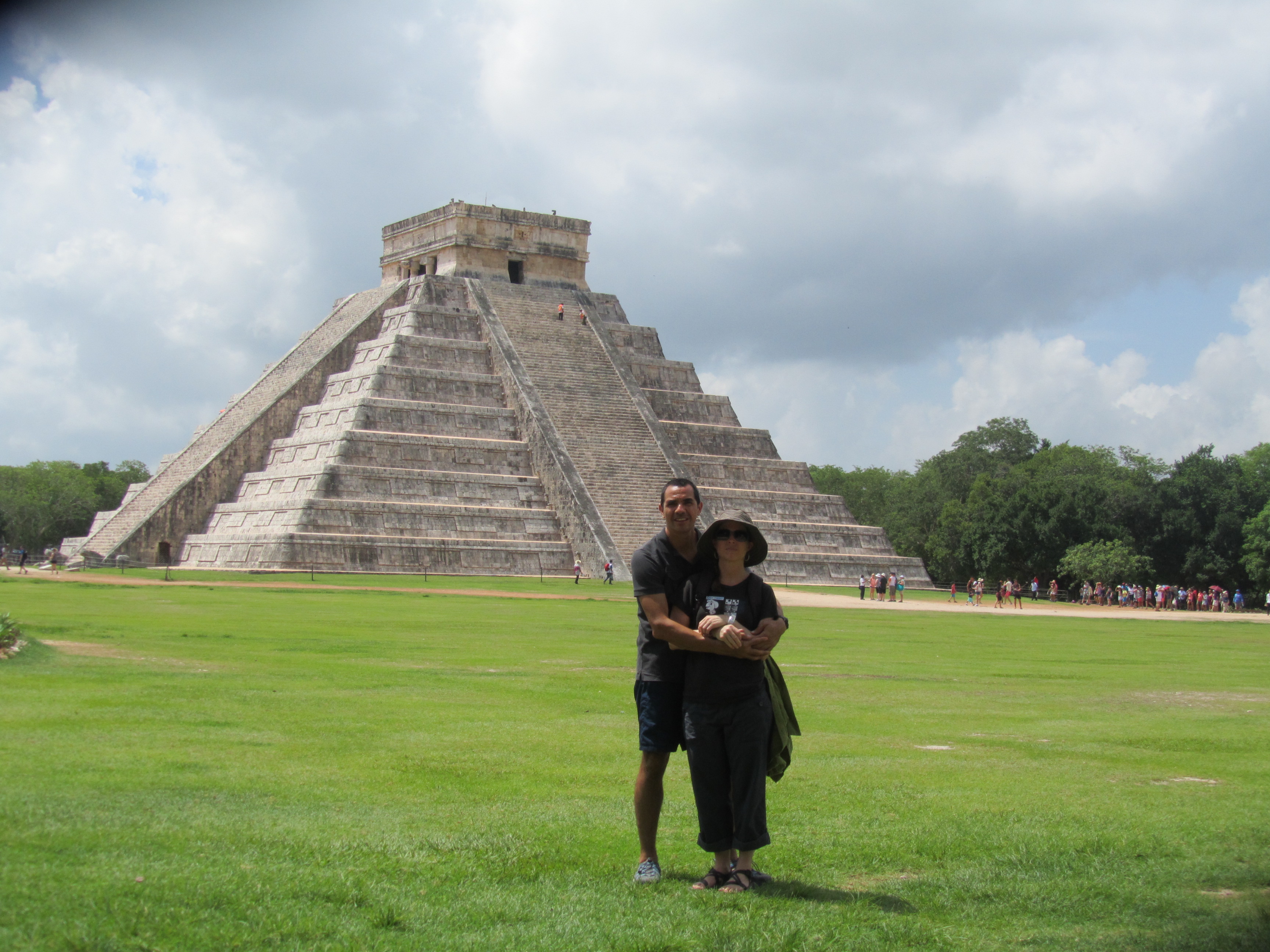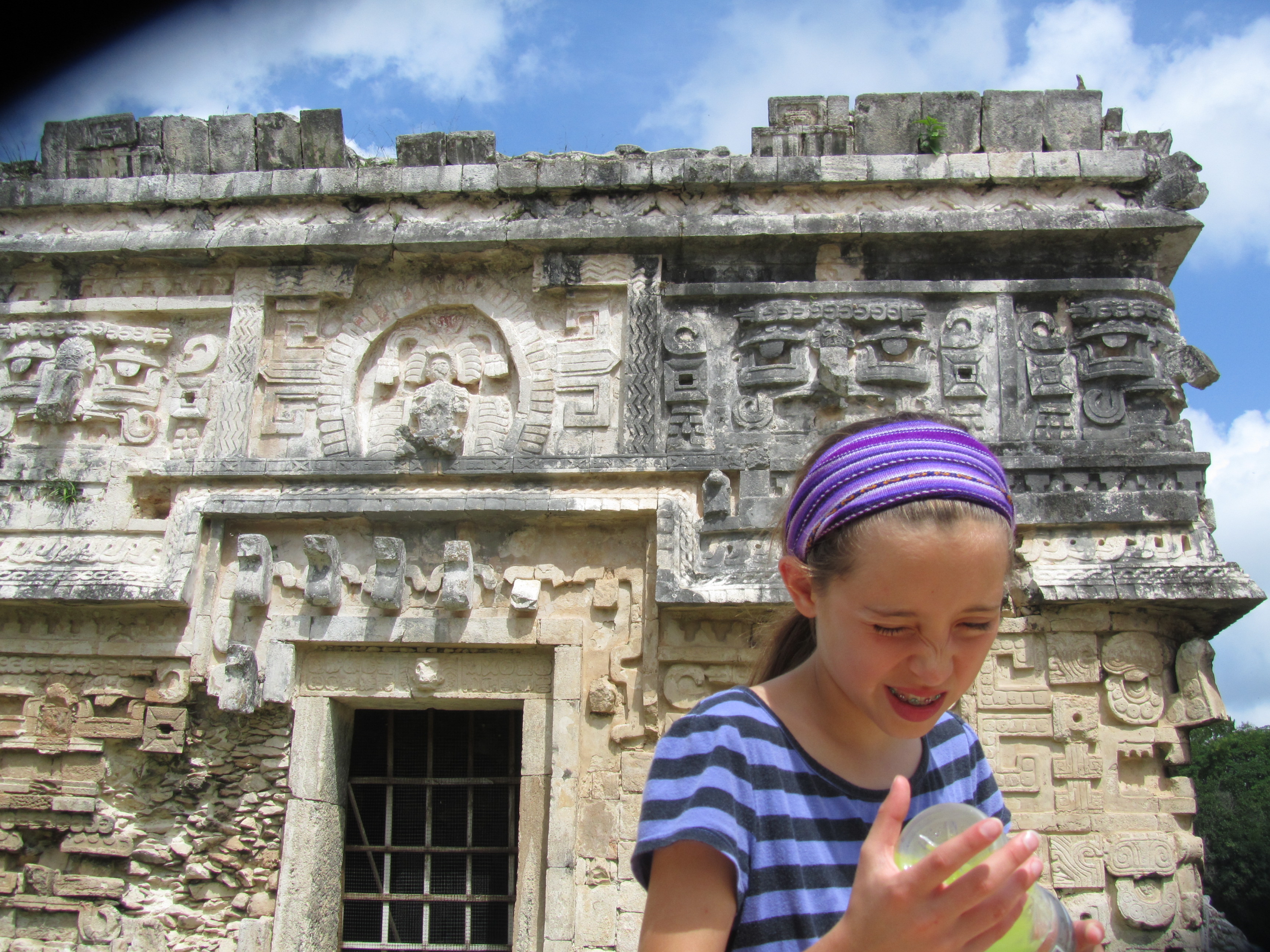 A couple of days ago we decided to visit the Mayan ruins of Chichen Itza. In 1988 UNESCO declared it World Heritage Site… One of the NEW seven wonders of the world. So… how could we pass it up? After all, it was only 176 kilometers away and Marty is quite enamored with Mayan culture. I looked into tour groups, but everything I read eluded to the fact that unless we arrived at exactly 8 o’clock when it opened we would be viewing temples with MANY other tourists in the scorching heat. We ended up hiring a taxi driver for the day and left at 6 in the morning to ensure arriving when it opened. The two-hour drive was easy and everyone in the back slept most of the way there. When we arrived at eight, the sun was already high in the sky and the heat was getting more intense by the minute. The admission price was $17 dollars per person, but the magnitude of this did not hit me until the afternoon when literally hundreds upon hundreds of people entered the grounds, on a Monday mind you. Apparently 1.2 million people visit Chichen Itza each year. Wow! The ruins were impressive even though they were all partitioned off and you could only view them from behind the ropes. I get it though, with 1.2 million visitors a year they wouldn’t last long with that many people trampling over them. We walked around for about 3 hours until the heat became too much. As we were leaving, the hordes of tour busses arrived and the amount of people that began to pour through the gates was simply astounding. The rest of the day went pretty much like that. We stayed one step ahead of the tour busses and had a terrific day.