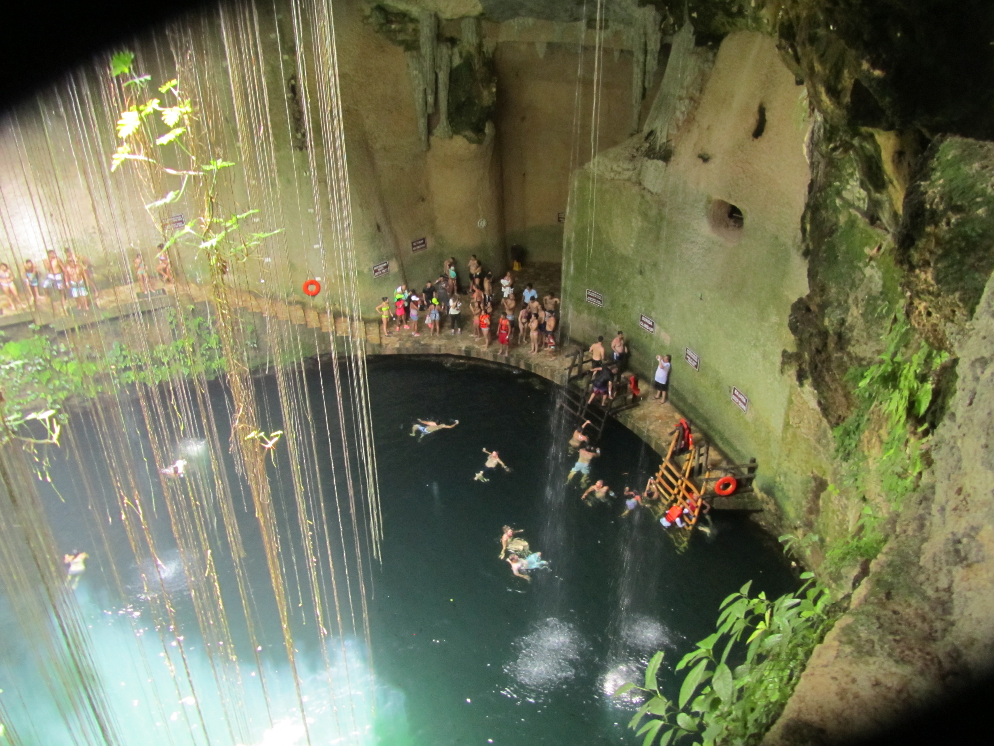 After the ruins, we headed to the famous cenote of Ik kil. We dove off a cliff, swam with black catfish, and relaxed after our morning at Chichen Itza. Luckily, we drove out as the tour busses were arriving again and headed to Valladolid for lunch. This entire area of Quintana Roo survives off of tourism and while it is annoying at times if you do not like the typical tourist scene, you can’t blame them for making as much money as they can off of tourists