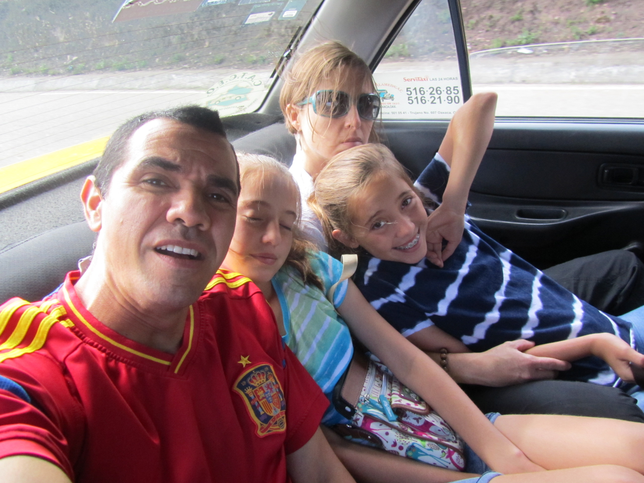 Instead of booking a tour bus to take us to Monte Albán, we decided to take a taxi to the ruins early this morning. We were assured that it would be easy to find a taxi for the return trip. That was not the case, and for a brief moment it seemed as if we were to be stranded on that lovely hilltop forever. I asked a local vendor about the taxi situation. Reiterating the fact that we were out of luck as far as a return taxi went, he then proceeded to ask me how much I paid for the taxi and then told me to wait a moment while he went to talk to a friend. He came back and said his friend would give us a ride back for 50 pesos more than I paid initially, but that his Ford Explorer would be far more comfortable than a taxi. Now normally, I know better than to accept rides from strangers, especially when in a foreign country, but I had few options and I decided to go for it and hope for the best. Besides, I had Party Marty with me. We hopped in the back of his car and took a chance. As it turns out, he was possibly the nicest guy on the planet, and we had a fabulous conversation and taught our kids a lesson in the process. (Not the lesson about riding with strangers, the lesson that you find the nicest people where you least expect to.) His name was Mario and he had lived in Georgia and San Jose, California working in construction up until about seven months ago. He returned to Oaxaca because he missed his family and the less stressful way of life down here. We helped him practice his English and he gave us local insight on Oaxaca. We got his phone number and he said if we needed anything during our stay to give him a call.