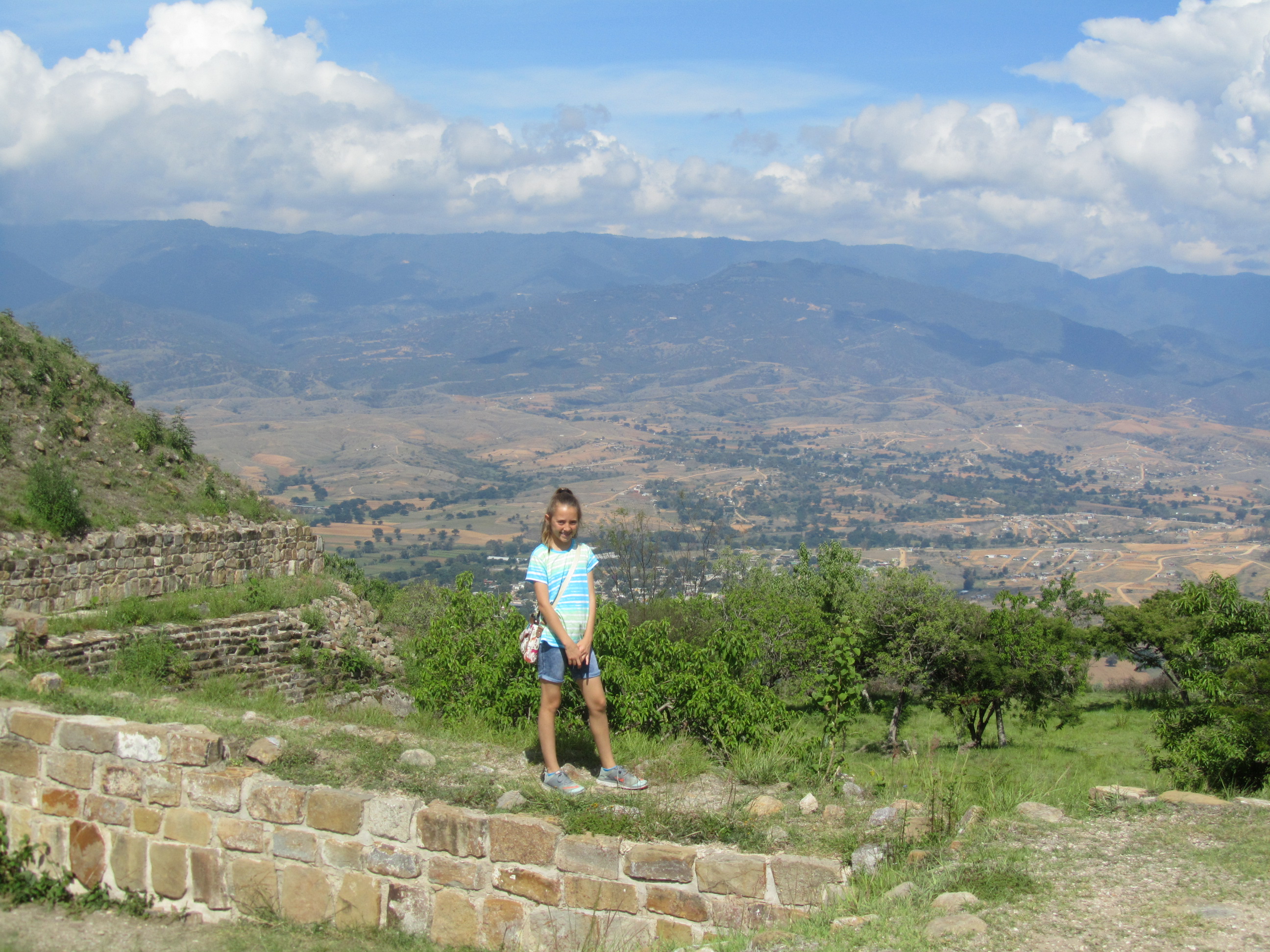 Today we ventured to the ancient city of the Zapotec Indians… Monte Albán. It is perched high above the city of Oaxaca on a hilltop and offers spectacular views of the city and the surrounding pueblitos. At one time, Monte Albán had upwards of 40,000 inhabitants and reigned for at least 1,200 years between 500 B.C. and 750 A.D. As far as ruins go, it is quite fabulous. When I was here 25 years ago, you could climb freely on all of the ruins. Now I would say you can climb on about 50% of them. The number of tourists were not bad at all, and we had a lovely morning scaling the temples and taking in the beauty of the valley of central Oaxaca.