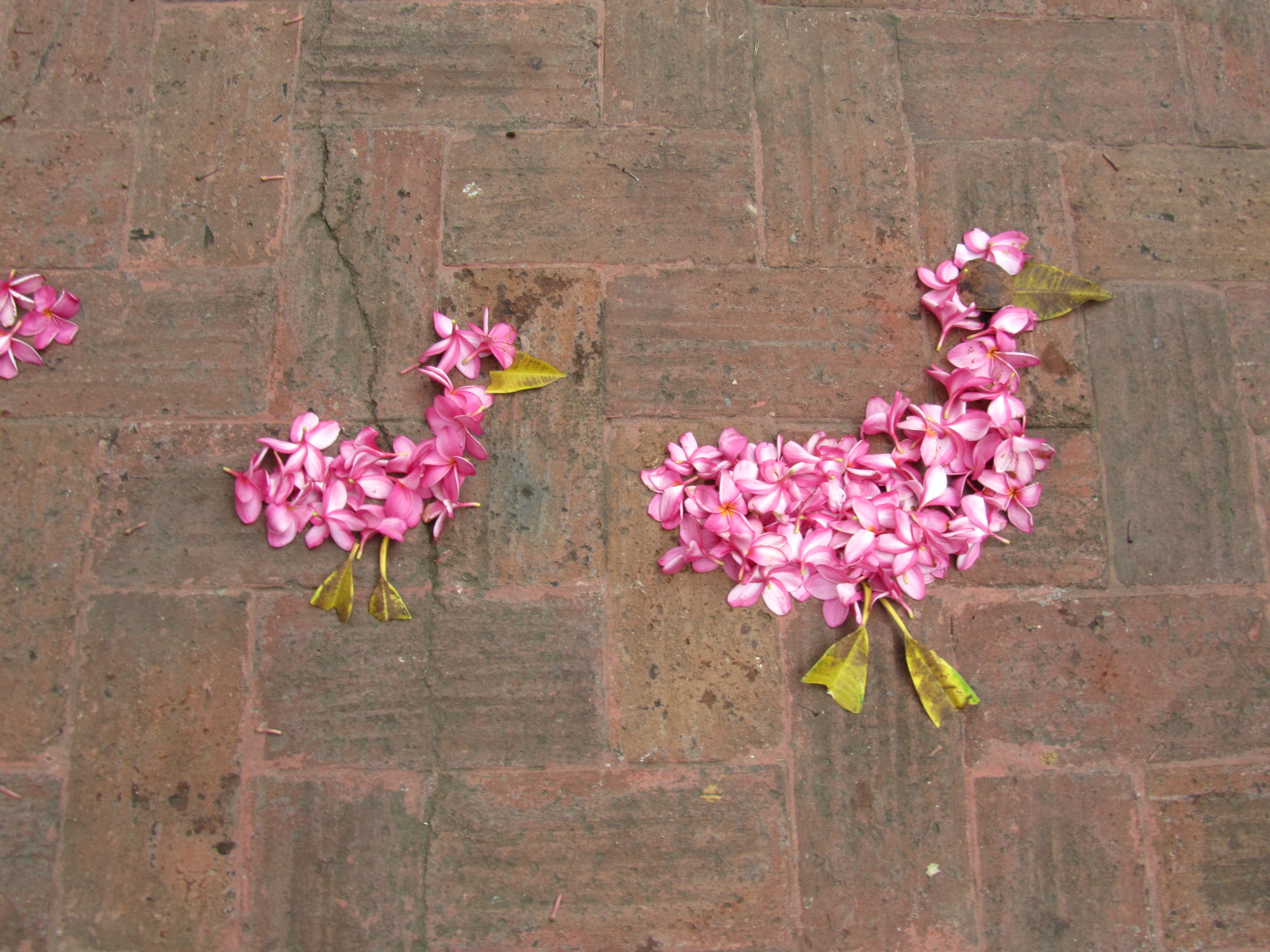 Next, I walked to the language school to tell Marty I was still alive, lest we have another incident like the day before. Of course, I found him in the courtyard making yard art with flowers, leaves, and sticks. He was in competition with the man trying to clean up the gardens, and he had to finish his masterpiece before it was swept away.