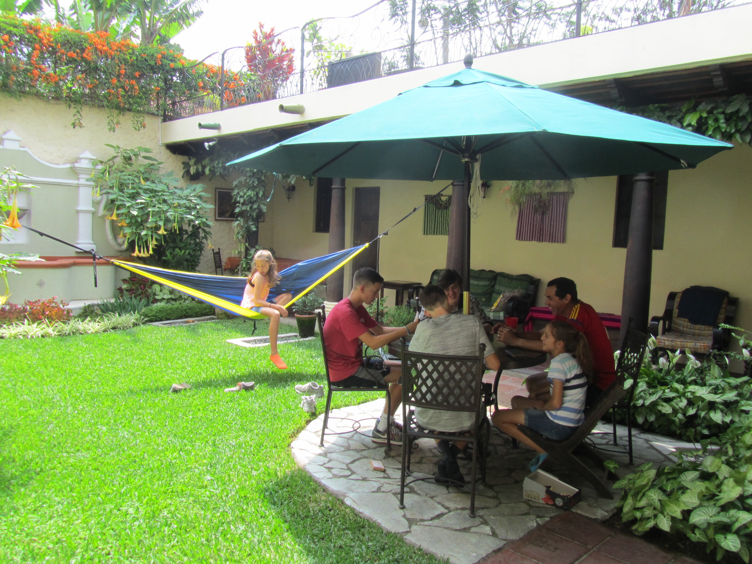 For the past several years I have been using VRBO to find rental houses abroad, and I must say that I have hit the mother lode this year. I did not think that I could top the house last year in Oaxaca, but this house blows it away. As a quick example, we arrived late Thursday night to a home cooked meal by our maid Angelica and we ended Friday night surrounded by volcanoes on a roof top garden in the hot tub. I shutter to think that I am spoiling these children and setting them up for disappointment when they start traveling on their own, but it is cheaper than staying at a hotel and I since I am getting older and have roughed it most of my adult life when it comes to travel accommodations, two tears in a bucket. Besides, dividing the cost of a house by 7 makes it affordable.