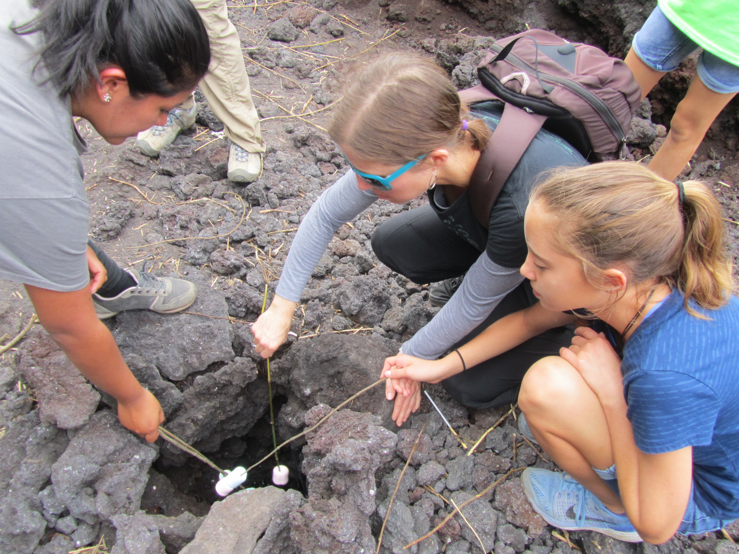 When we finally reached the top, it was actually quite amazing. It felt like we were on the moon. You could see the distinct lava flows from 2010, 2014, and 2 ½ months ago. Steam was rising out of the fissures, and as an added tour bonus, we roasted marshmallows over one of them. In many places, the rocks were hot, and our guide said if we decided to walk around on the old flows, be careful we didn’t melt the bottoms of our shoes. It was actually quite spectacular, and we had a great time. The decent was easier for sure, but quite hard on the ol’ knees. The entire trek took about 3 ½ hours and by the time we crawled back in the van, I was pooped. Crazy enough, we were back in Antigua by 12:30.