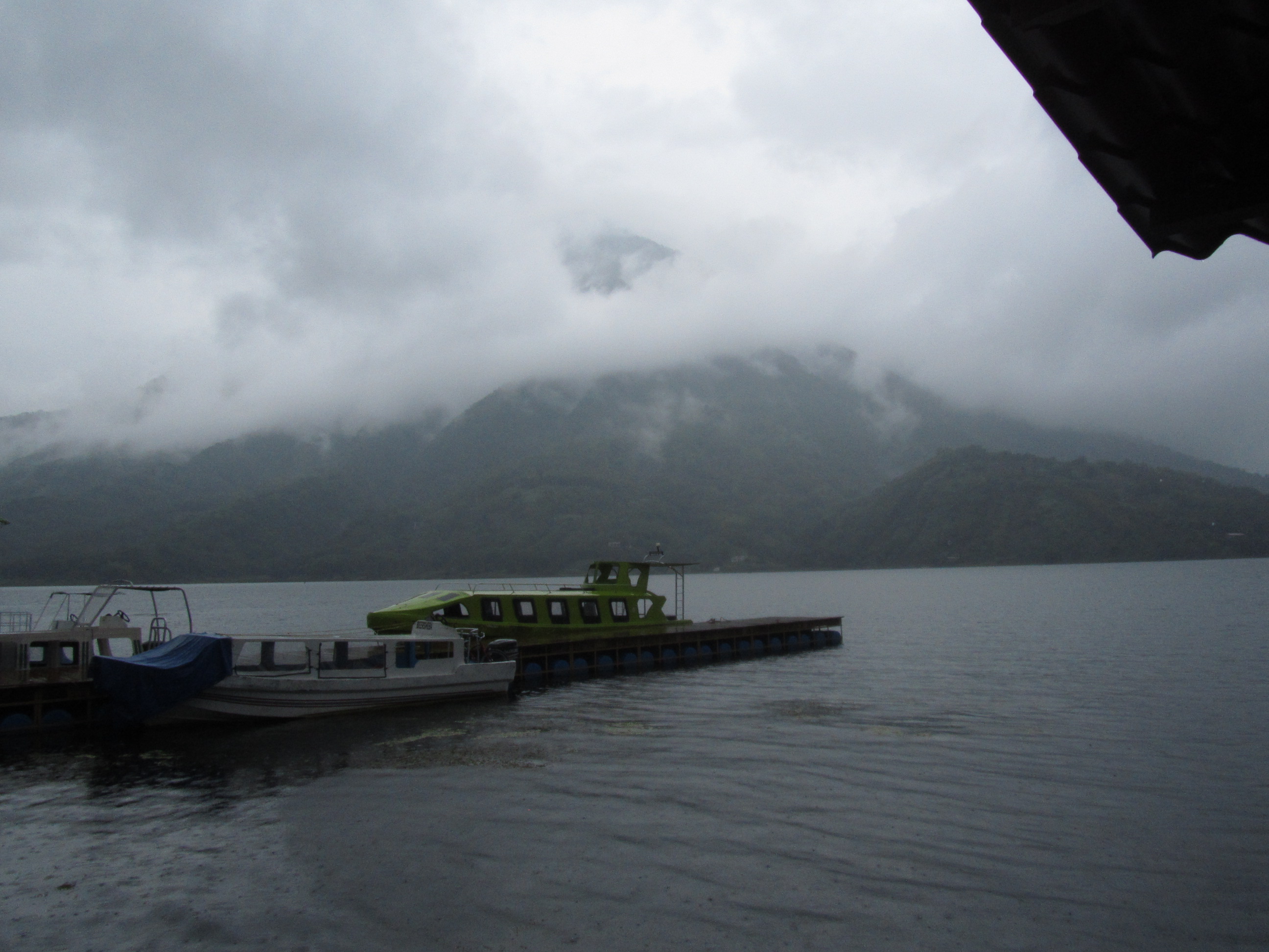 After dropping off our things at the hotel, we found a boat to take us across the lake to Santiago Atitlan. When I was here in 1996, it was a tiny village that had but a few buildings and housed the beloved Guatemalan “saint” Maximón. He is revered here in Guatemala and appreciates offerings of tequila and cigarettes. Now, I hardly recognized the town of 32,000 people. The 30-minute boat ride cost about $3.50 USD and all was going quite smoothly until it stared to pour. The next thing I knew, we were flying over growing swells and getting soaked by a combination of rain and lake spray. At a whopping 63 degrees, it was chilly and I wondered what the kiddos were thinking. At that precise moment, one of them turned around and said,” This is awesome, the best thing we’ve done so far!” Go figure!