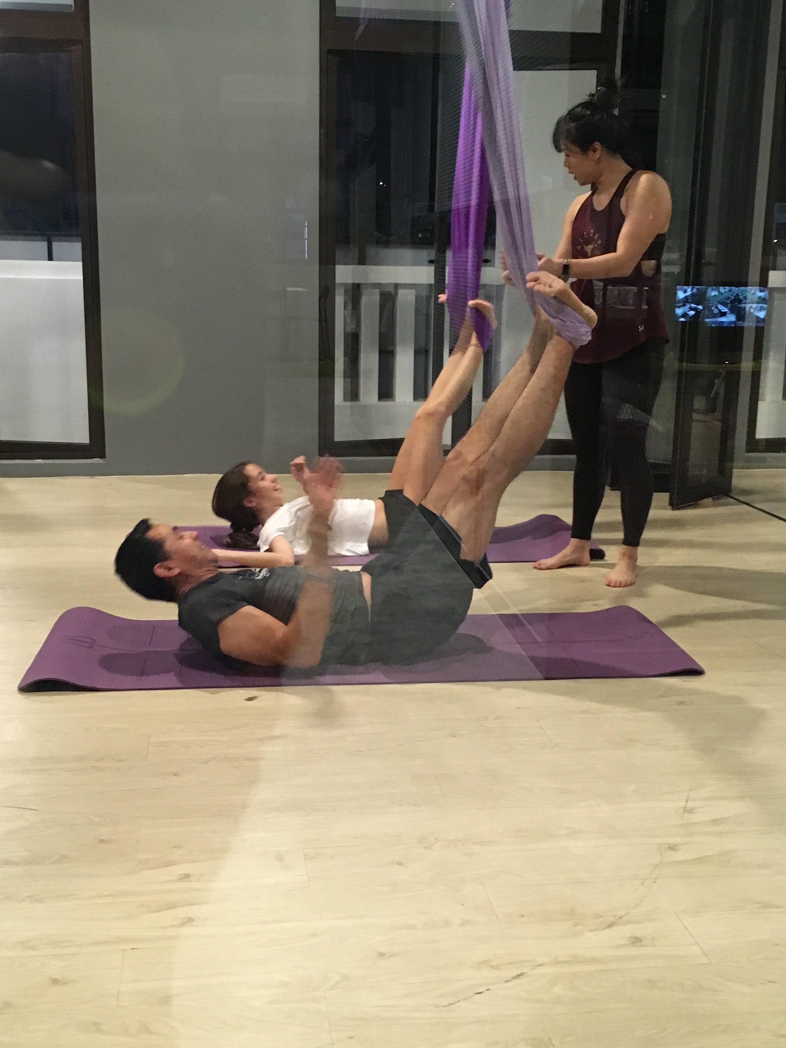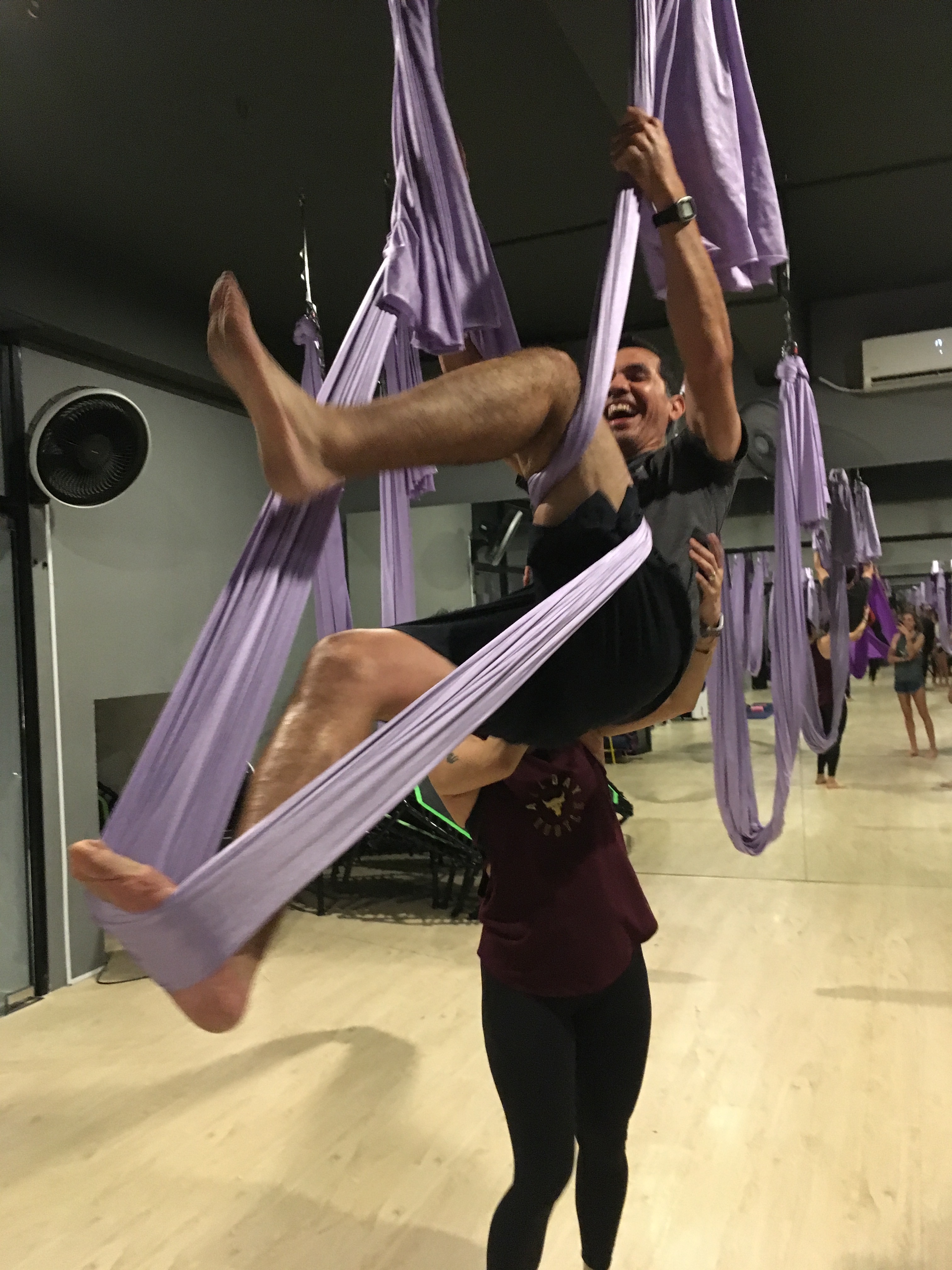 As another example of trying new things, Marty and the girls attended their first aerial yoga class.  It was apparently much more difficult than any of them expected, but great nonetheless. I opted to go upstairs and work out while they attended their first class… I didn’t want to steal their thunder, if you know what I mean.
