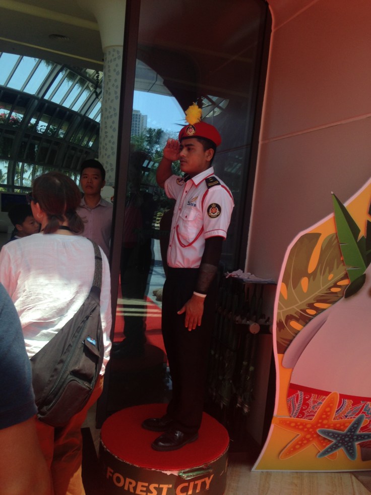 A small amount of background info is needed here. Malaysia is a primarily (60%) Muslim country, which means that 60% of the population does not drink alcohol. Therefore, alcohol is heavily taxed. Going to a local restaurant or bar, a local beer equivalent to Budweiser is approximately $8 U.S. dollars. If you buy a six-pack in a local store like Tesco (a British version of Wal-Mart) you pay roughly three times more than you would in the States. Therefore, drinkers (and ex-pats tend to be drinkers) will go out of their way to avoid paying taxes on their alcohol. Enter FOREST CITY. Not only is it a billion dollar planned community/city dreamt up and mostly funded by the Sultan of Johor (the ‘King of sorts’ in the state I live in), but it also has a duty free zone (like you would find in an international airport) where you can purchase alcohol for similar prices like you would find at home. Forest City is an amazing GREEN city (literally green with plants cascading down every building, but in the eco-friendly sense as well), and although 80-90% of the apartments and condos have been purchased, they are only about 10% occupied with human beings. It is impressive and eerily post-apocalyptic at the same time…. It feels a lot like the Will Smith movie ‘I Am Legend’. I imagine in about ten years it will be teeming with life and the investments people made will have paid off immensely, but for now it is a bit odd. The bottom line is that we went to the duty free center, the newly hired teachers bought an amazing amount of alcohol, and we left… interesting field trip if you ask me. I suppose on the list of things new teachers need to know, the duty free zone ranks pretty high.